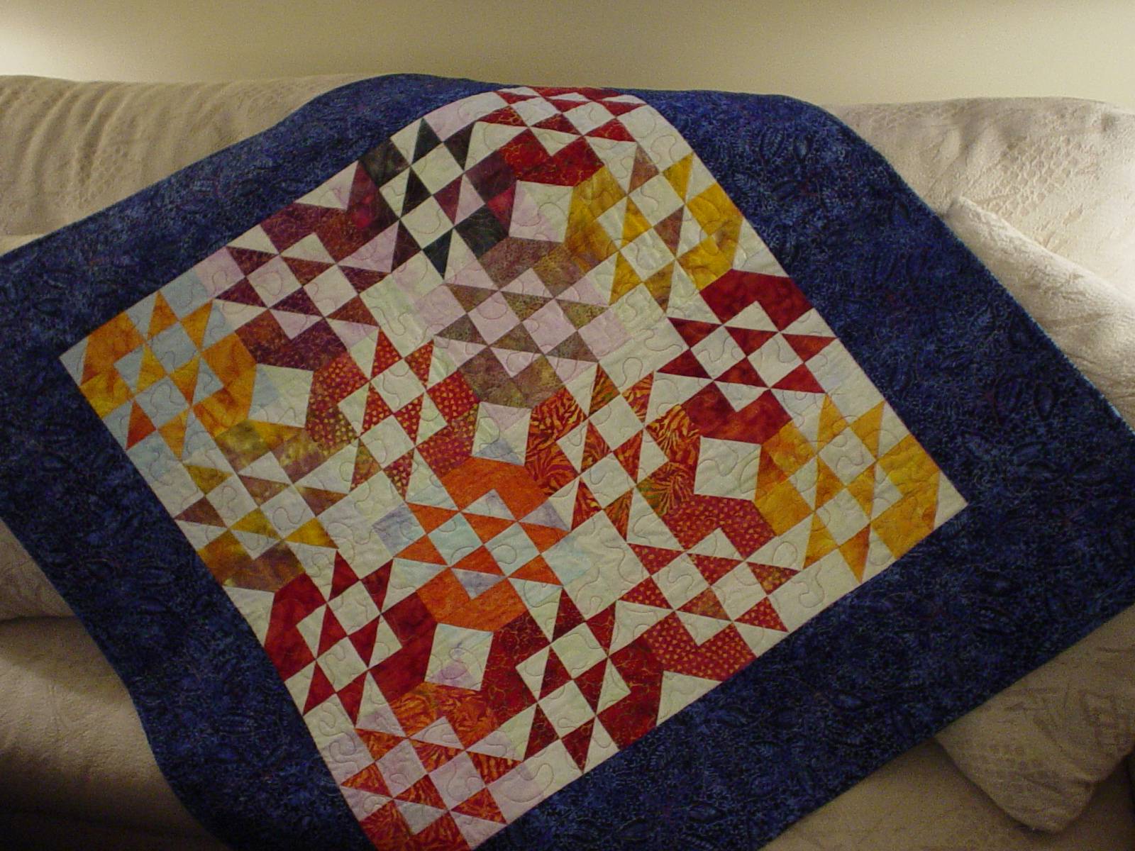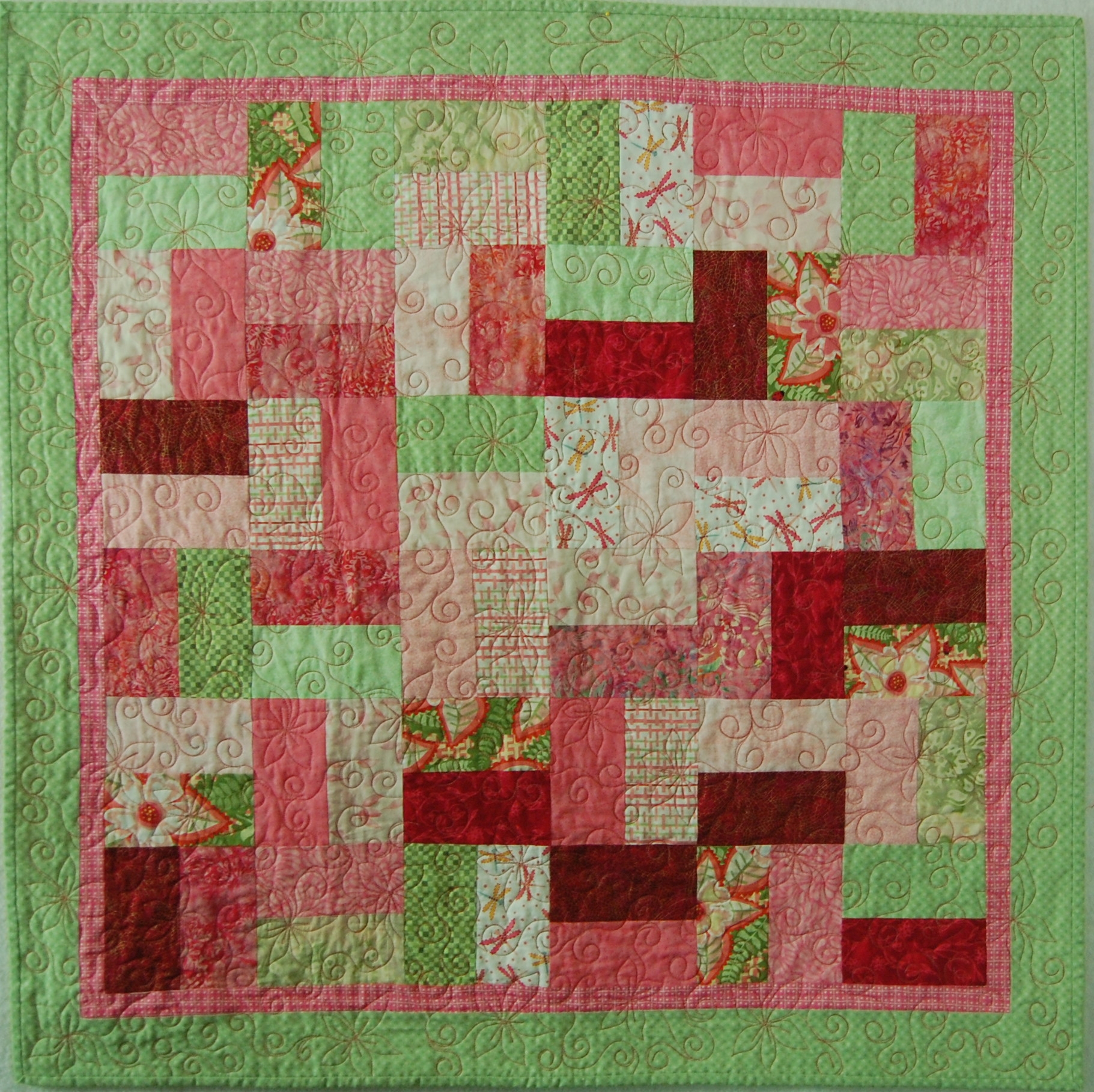 An original design using left-over bits from another quilt. Quilted in an all-over echoed paisley design.