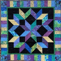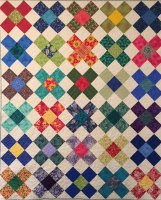 A scrap quilt of intense color with shimmering stars. Pattern is "Shimmer" by Joy Hoffman, McCall's Quilting Magazine, Feb. 2004.