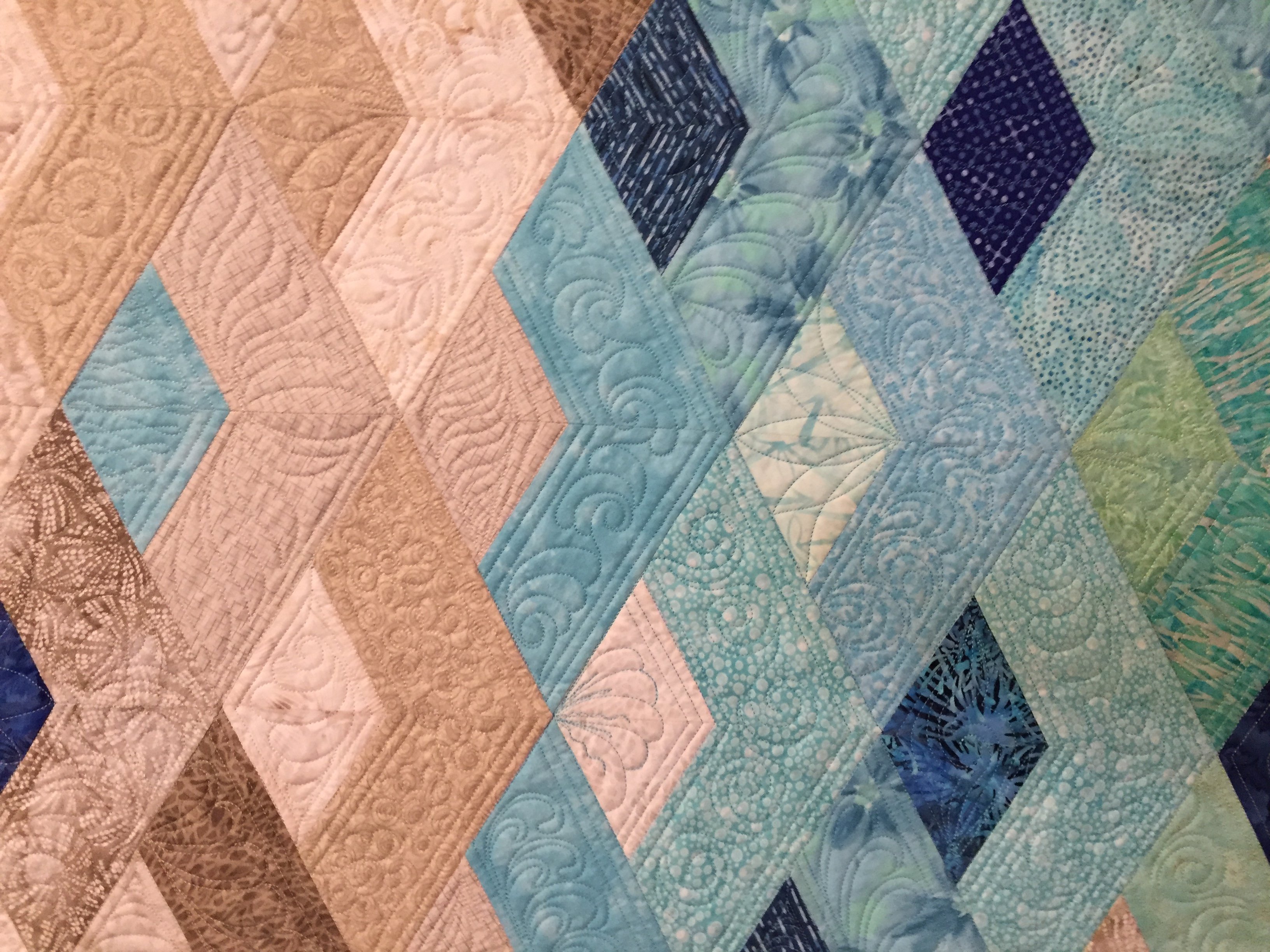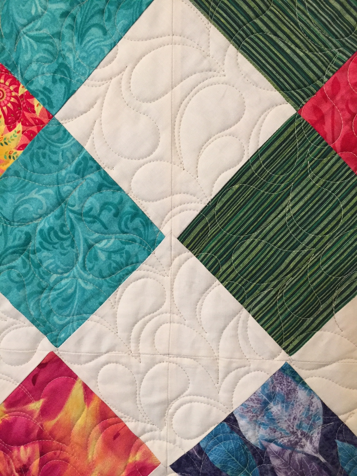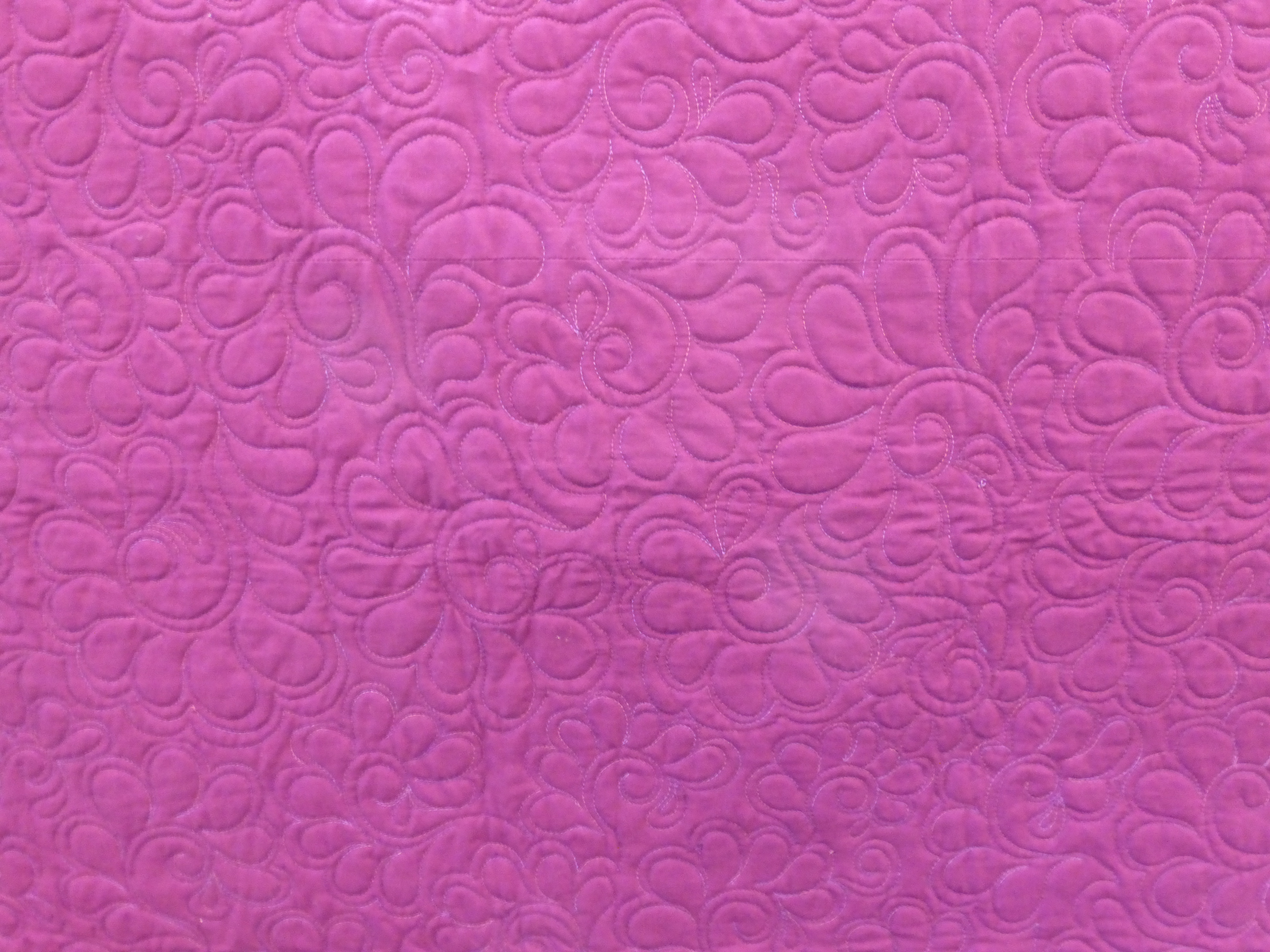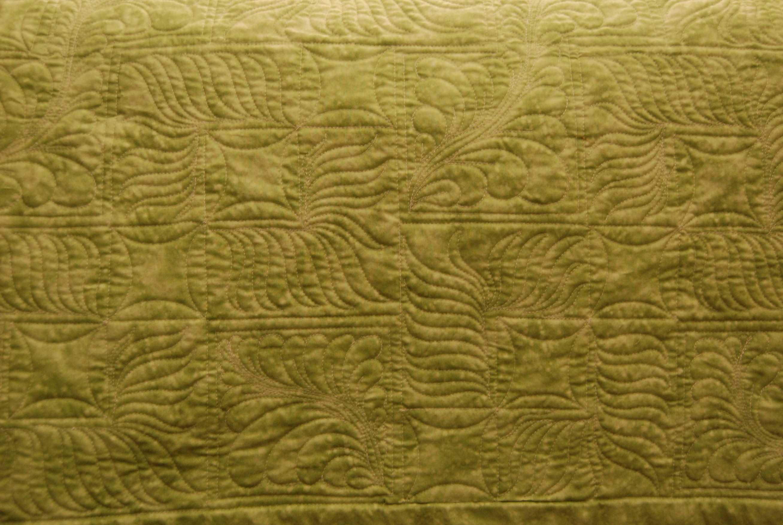 Edge-to-edge quilting of feathered swirls.