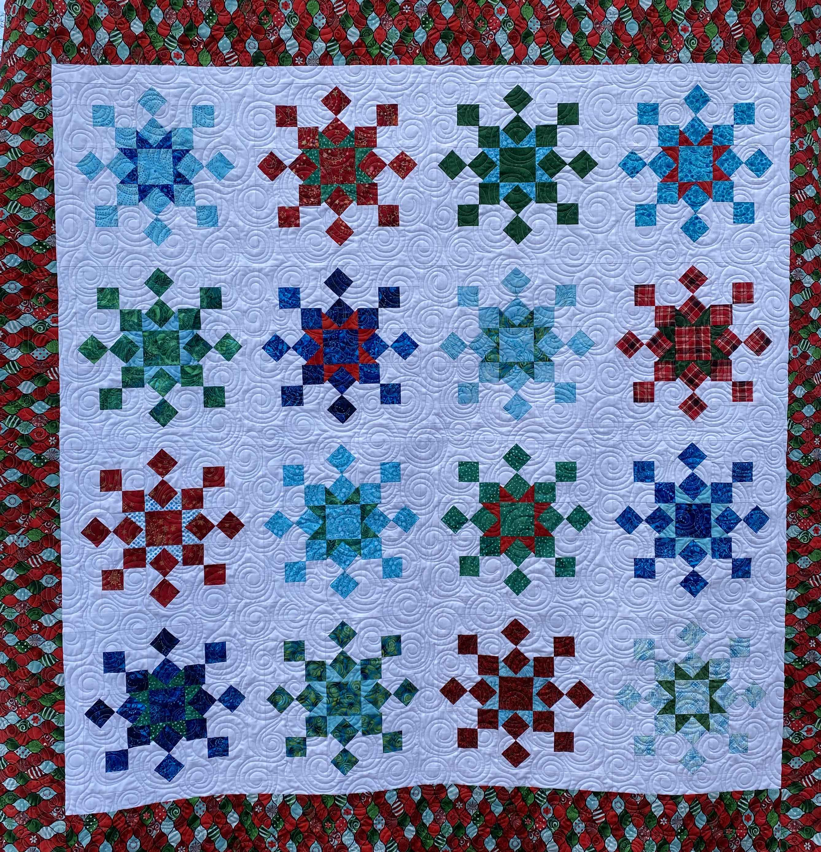 A Christmas quilt for a family member in New Zealand to capture the bright colors of that country.