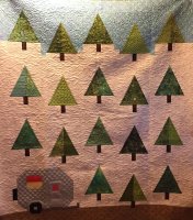 A camper quilt for a family member who bought an Airstream camper. In an attempt to be more realistic, I modified the pattern slightly (reversing the camper) as the Airstream camper has the door on the other side.