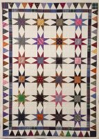 This quilt tells the story of a dancer, featuring t-shirts, photos and several "star" blocks.