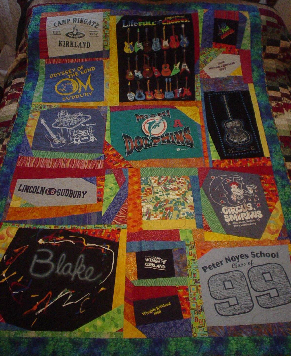 T-shirt Quilt - 14 squares, "Funky" Setting